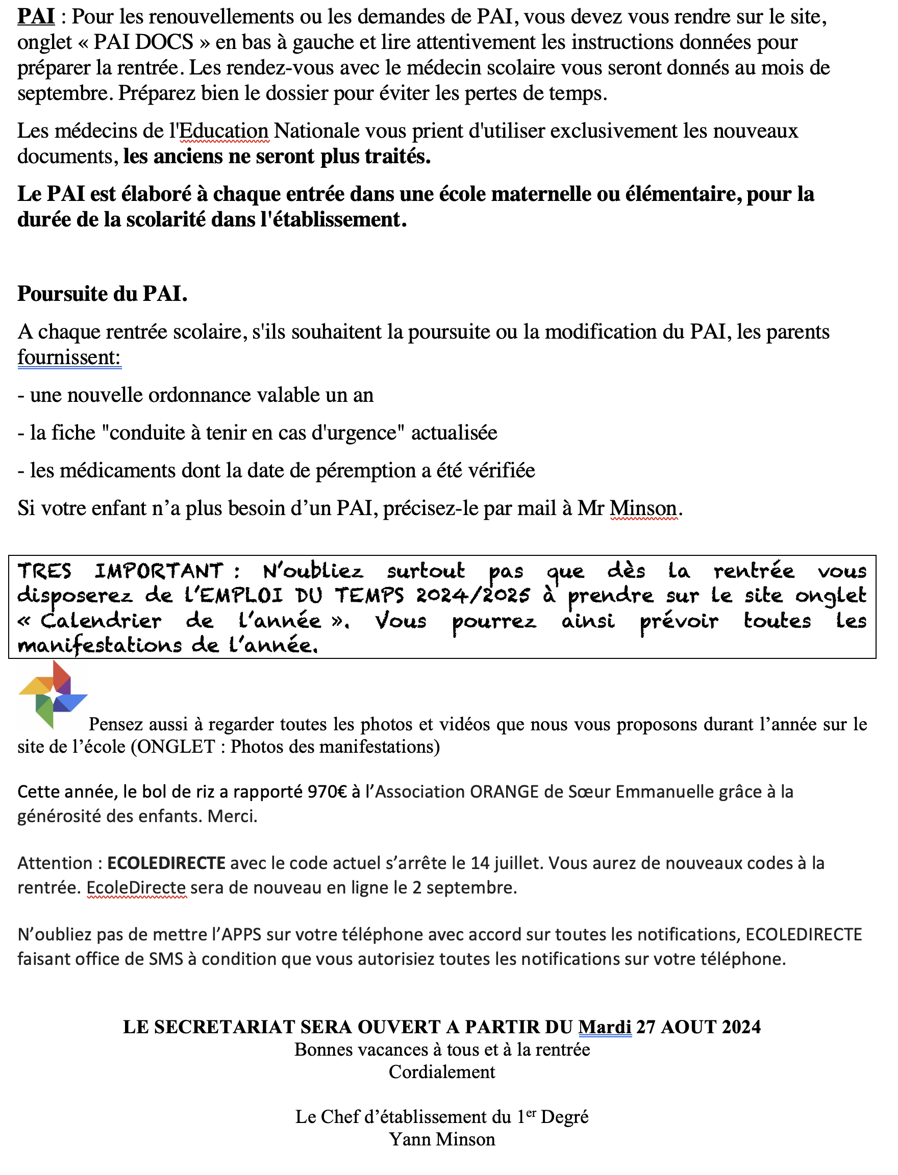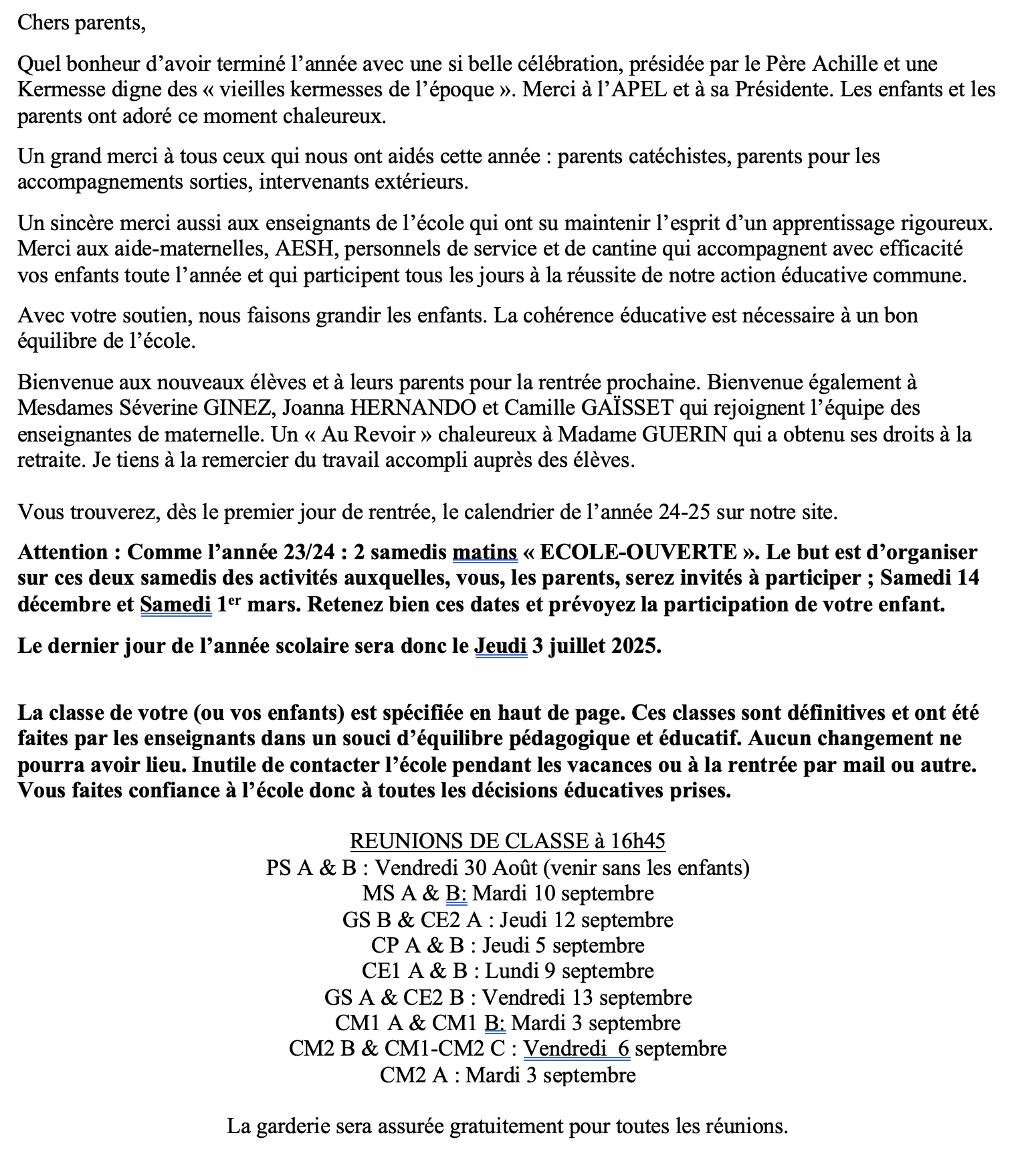Nous avons également la joie d'accueillir une nouvelle Présidente d'OGEC: Christine Audeguin.